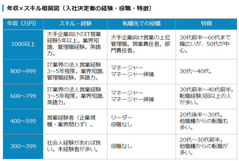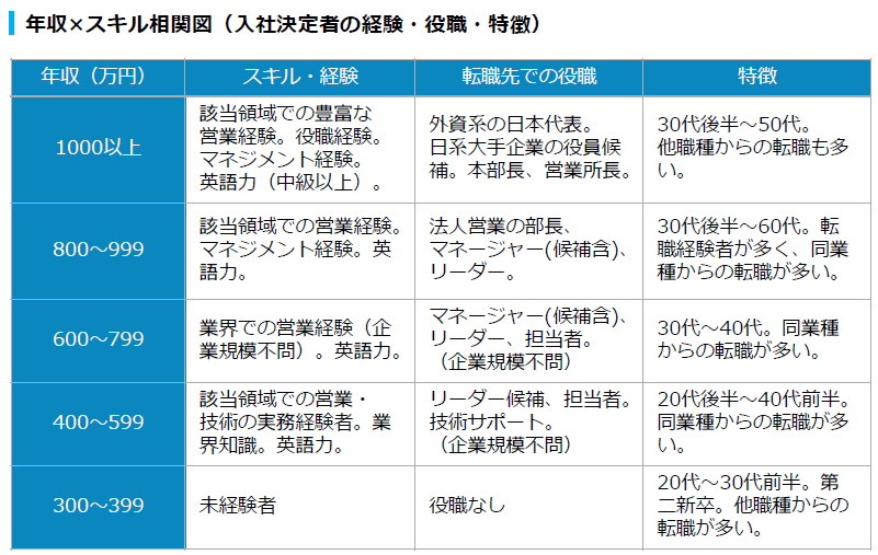 また、人材紹介会社からの情報を基に、首都圏における、一定の年収帯ごとの採用が決定した者の特徴について定性情報として記載した。