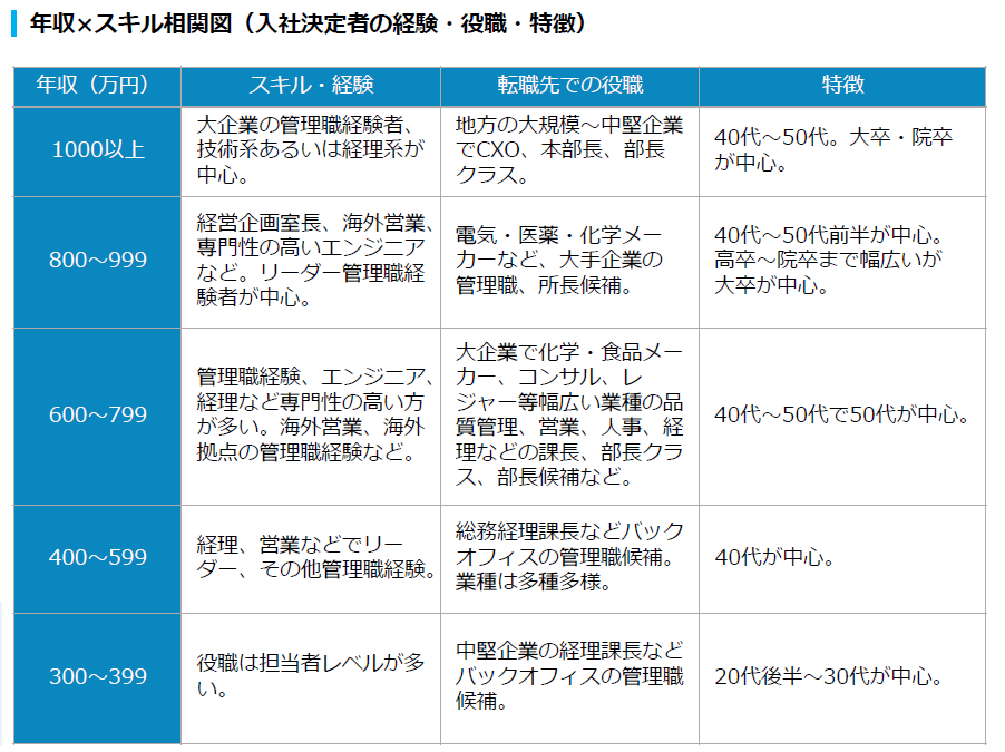 また、人材紹介会社からの情報を基に、首都圏における、一定の年収帯ごとの採用が決定した者の特徴について定性情報として記載した。